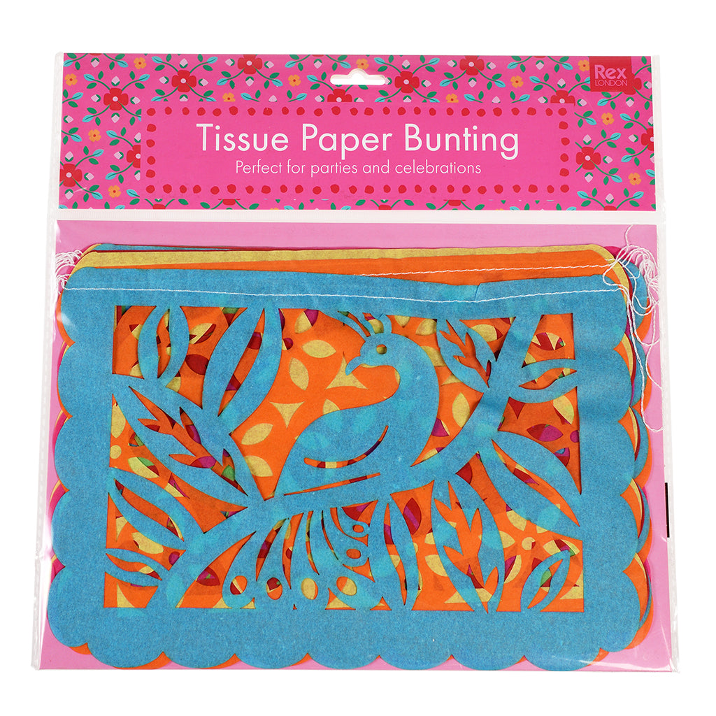 Perfect for parties and celebrations, this decorative garland features solid-color tissue paper pennants with beautiful cut-out images of animals and plants. Warning: - Handle with care to avoid tears, as the material is very delicate - Not a toy. Keep out of reach of children - Keep away from open flames and strong heat sources Approximate size of each pennant: 26 x 18 cm