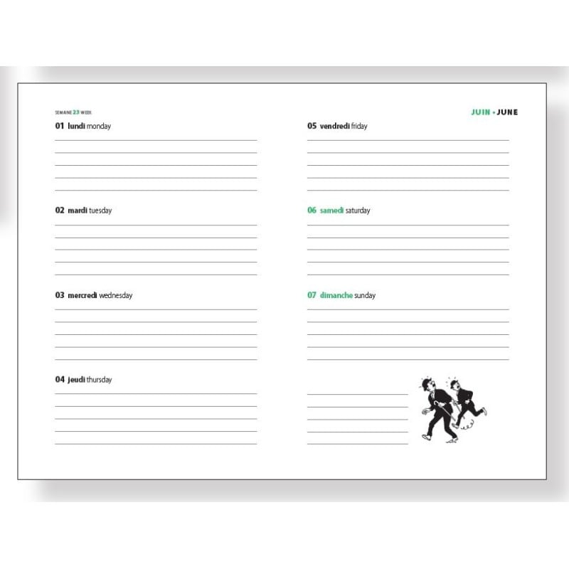 Agenda et calendrier sont les indispensables outils d'une organisation efficace. Dans ce domaine, le papier revient en force et continue de combler ceux qui aiment percevoir sa fibre au passage de la pointe du stylo ! Simples d'utilisation, d'un format maniable et étudié, nos agendas offrent un espace d'écriture confortable et pratique. Ils permettront de retrouver au fil des semaines les visuels les plus emblématiques des aventures de Tintin !