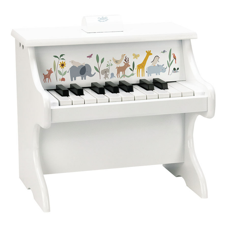 Ce joli piano-jouet en bois illustré par l'artiste Sarah Betz-Cubeely est livré avec dix partitions adaptées aux enfants dès 3 ans, afin qu'ils fassent leurs premiers pas dans le monde musical.